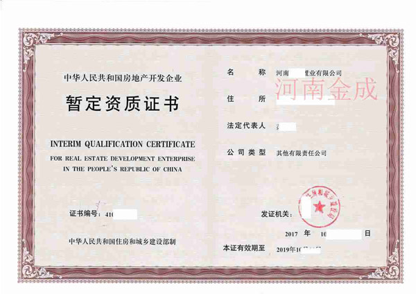• 4.鄭州房地產開發資質代辦多少錢暫定級如何延期