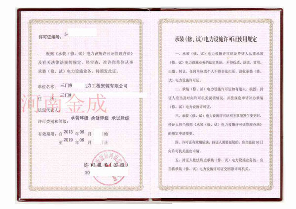 • 承裝(修、試)電力設施許可證